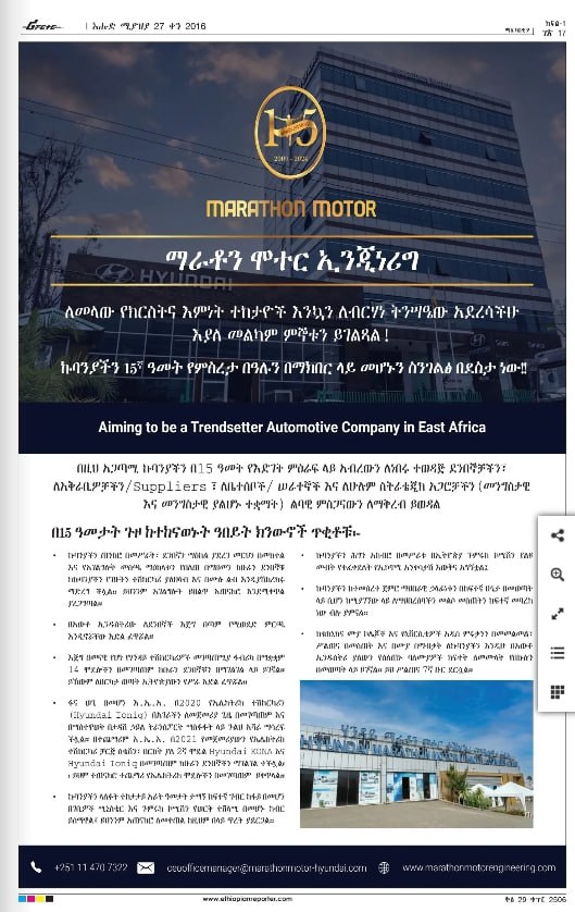Marathon Motor Engineering PLC (MME) was founded in 2008 as importer and distributor of Hyundai vehicles and genuine parts to Ethiopia.