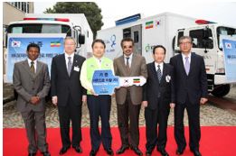 Donation of fully equipped Mobile Clinics to MOH Mr. Chung Jin Heang, President of HMC presented the donation (2011)