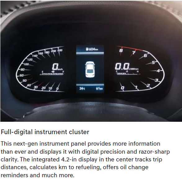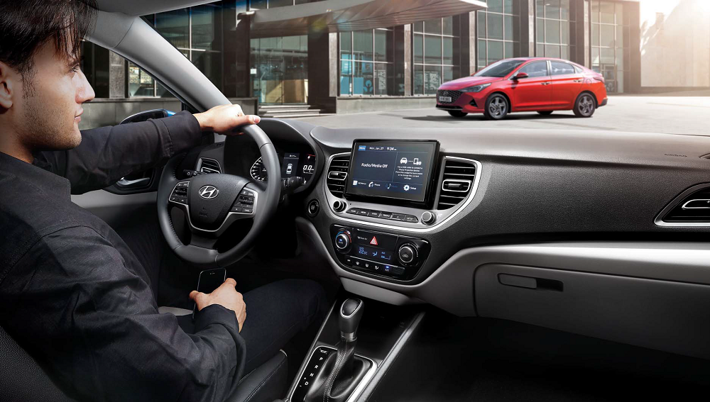 Accent’s well-appointed two-tone cabin provides the perfect space to relax and to be productive too. Once you shut the doors, the peace and quiet will amaze you because Accent is exceptionally well-insulated from road and wind noise. And to keep you well connected and productive while you’re on the road, the 8-inch multimedia display offers full support for smartphone connectivity and a lot more through a touchscreen display with easy-to-navigate menus. The colorful dials on the instrument are razor-sharp, precise and easy to read thanks to digital display technology.